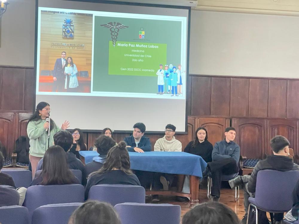 El conversatorio permitió a los futuros egresados interactuar directamente con jóvenes que hoy cursan diversas y exigentes carreras en algunas de las universidades más destacadas del país, incluyendo la Universidad de Chile, la Pontificia Universidad Católica (UC) y la Universidad de Santiago de Chile (USACH).
