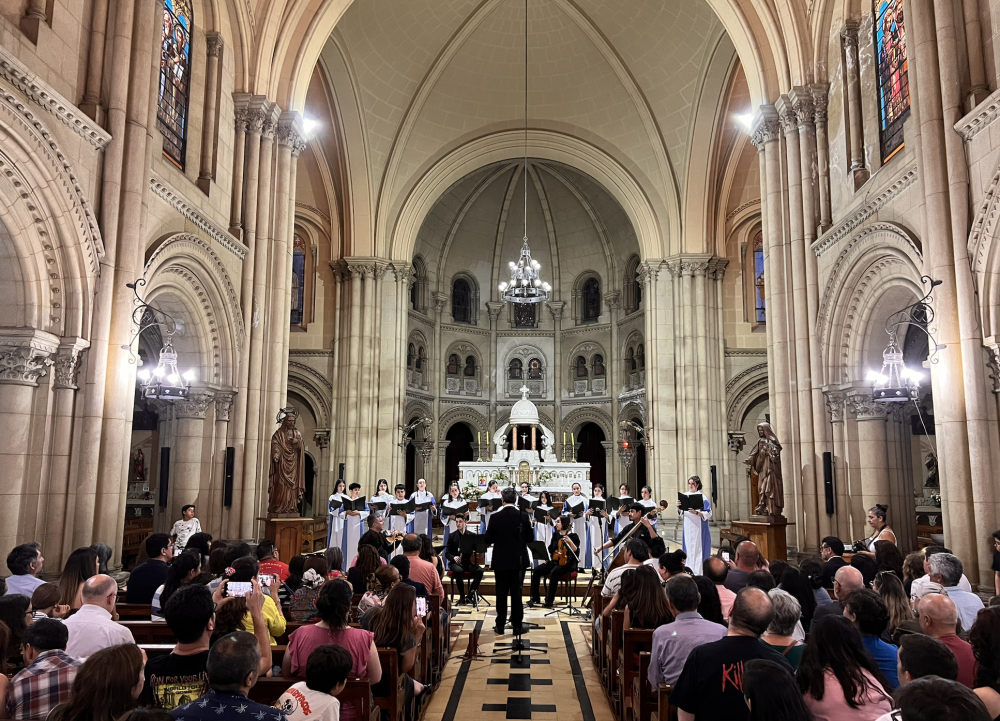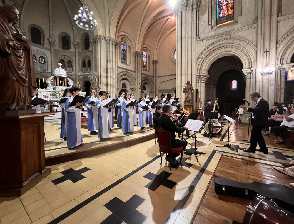 El pasado jueves 4 de diciembre, a las 19:30 hrs., se llevó a cabo el Concierto de Celebración de los 30 Años de vida del Coro SSCC del Arzobispado de Santiago en el Templo del Colegio. Los asistentes al evento tuvieron el privilegio de disfrutar de un verdadero deleite musical. El Coro presentó un importante y variado repertorio, que fue realzado por el acompañamiento de un talentoso cuarteto de cuerdas. El público escuchó atentamente cada pieza, reconociendo la calidad y la pasión que caracterizan a esta agrupación.
