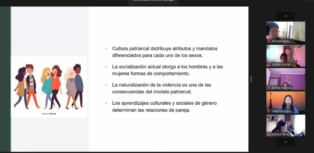 Durante la sesión, los y las estudiantes tuvieron la oportunidad de aclarar conceptos y participaron activamente compartiendo sus experiencias y reflexionando respecto de los roles de género y las variadas construcciones sociales aún existentes respecto de las relaciones de pareja, los atributos asignados a cada sexo y las distintas manifestaciones de violencia.