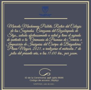 La ceremonia se realizará el miércoles 7 de julio a las 11:00 horas. El link de Zoom se envió a los correos electrónicos de los/as apoderados/as de IV Medio.