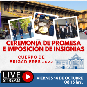 Junto con saludarles con mucho afecto, informamos que el viernes 14 de octubre a las 8:15 horas se realizará la ceremonia de promesa e imposición de insignias del Cuerpo de Brigadieres 2022.