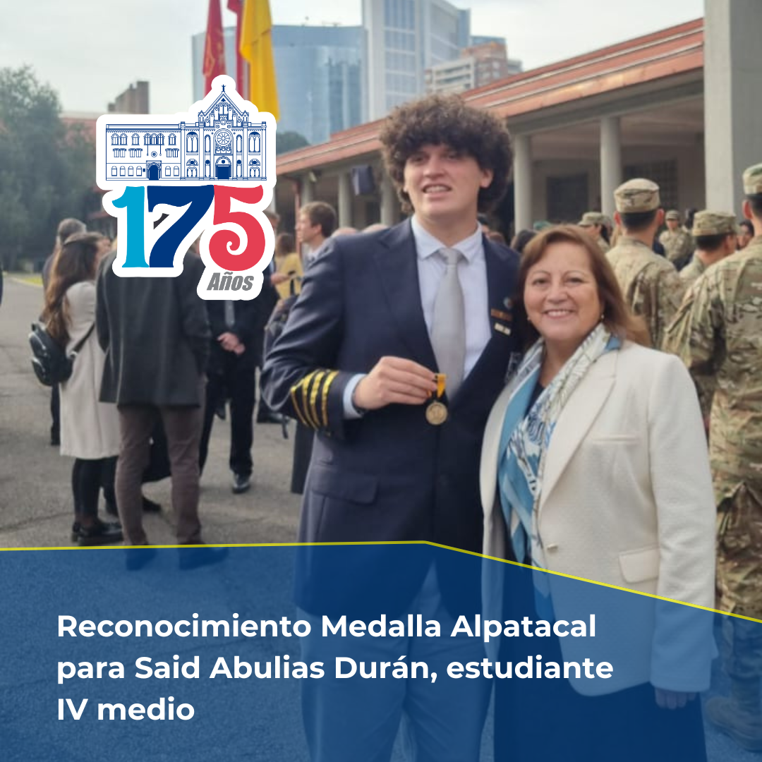 El pasado jueves 18 de julio, el estudiante de IV medio de nuestro colegio, Said Abulias Durán, recibió la Medalla en conmemoración de la tragedia de Alpatacal, un reconocimiento otorgado a aquellos jóvenes que destacan por su liderazgo, compañerismo y cumplimiento de la labor.