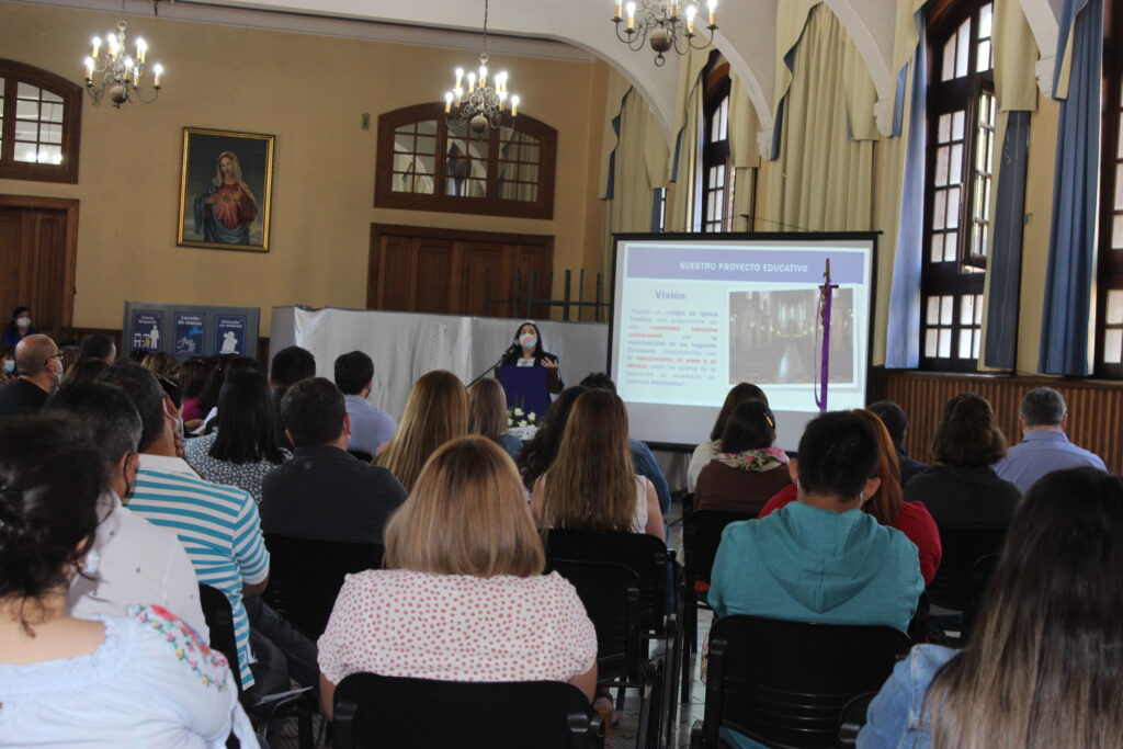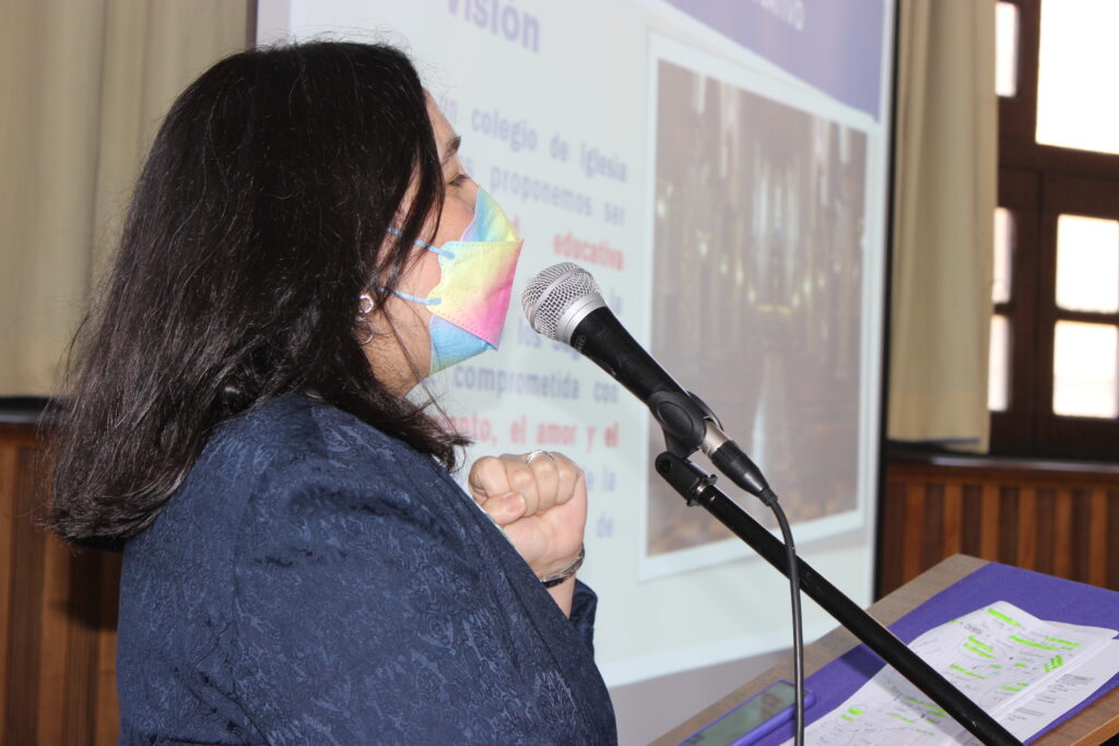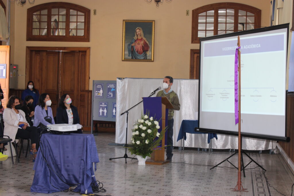 En la oportunidad la rectora, Rosa Duque presentó el equipo directivo a los(as) asistentes, repasó la historia del colegio, mostró el plan de desarrollo institucional y explicó con detención los sellos educativos que distinguen a nuestra institución.