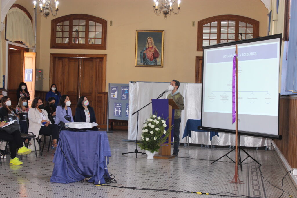 Asimismo, las vicerrectorías Académica y de Formación mostraron el trabajo que realizan con los(as) estudiantes a través de sus distintas áreas. Este bloque comenzó con la exposición de Alejandro Lühr, vicerrector académico y después, separados en grupos, los(as) nuevos(as) apoderados(as) participaron en las actividades informativas lideradas por las jefas de las áreas de Convivencia Escolar y Prevención; y Socioafectiva y Familia; Leticia Fuentes y María Carolina Farías, respectivamente.