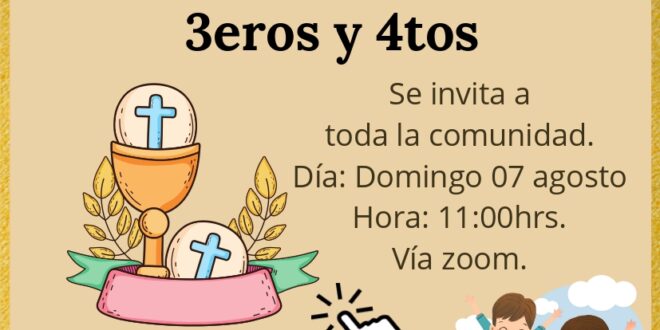Leer más »Domingo 7 de agosto a las 11:00 hrs / modalidad online Más información en https://www.ssccalameda.cl/portal/misa-de-3-y-4-basico/