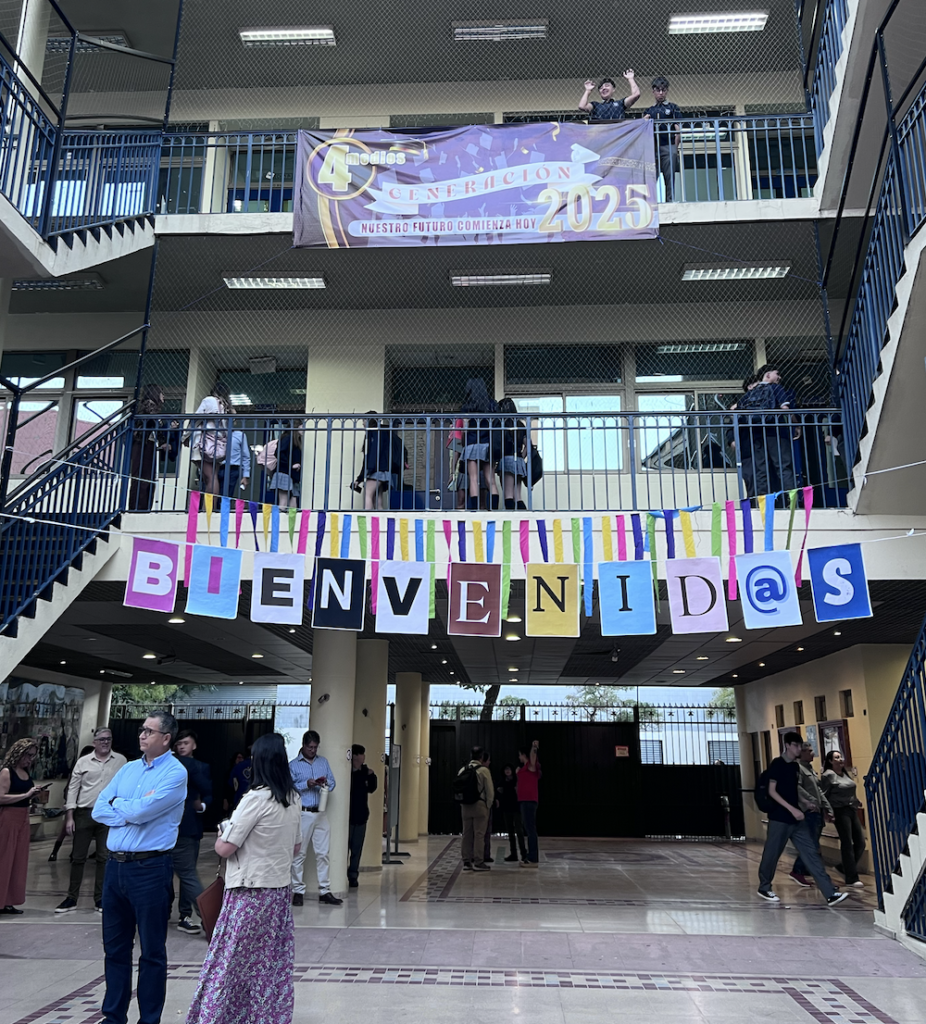 En las salas de clases, los profesores jefes esperaban a sus alumnos(as), listos para comenzar un nuevo año de aprendizaje y crecimiento. Tras un primer momento para reconocer las salas y reencontrarse con los compañeros, toda la comunidad se reunió en el Patio Central en un acto de bienvenida y bendición.