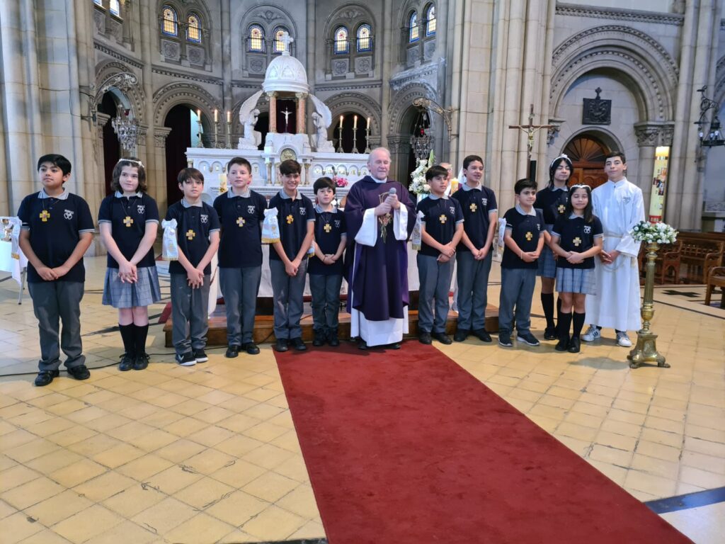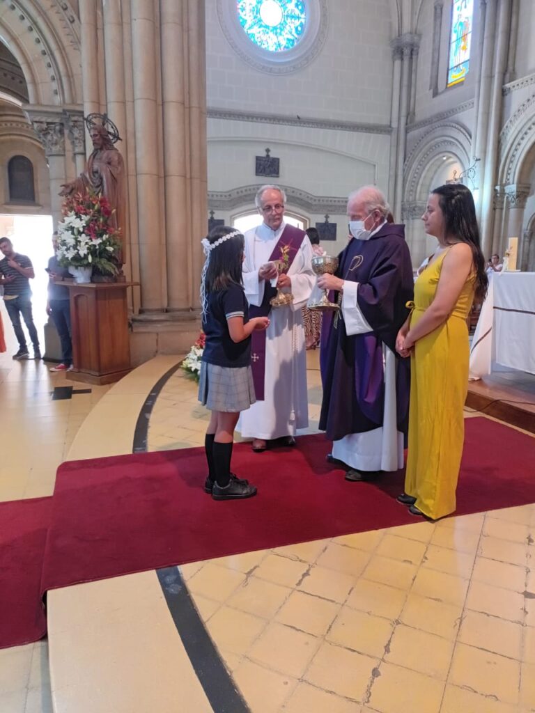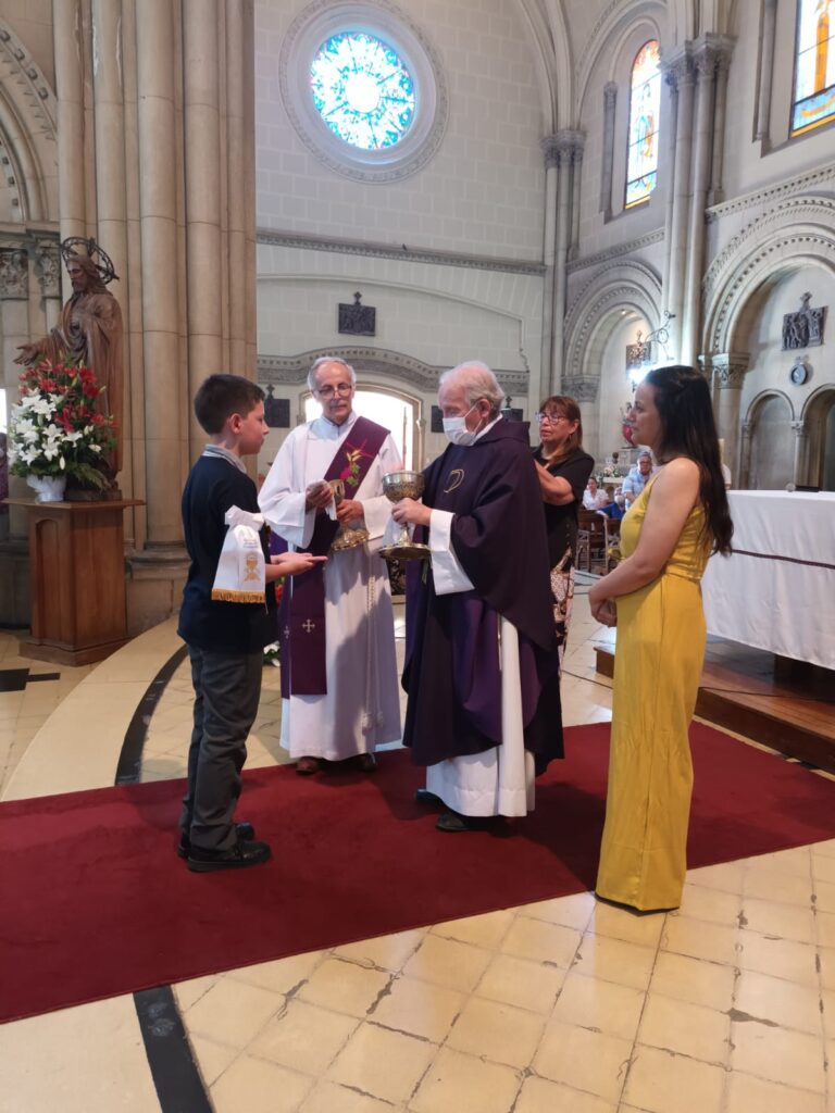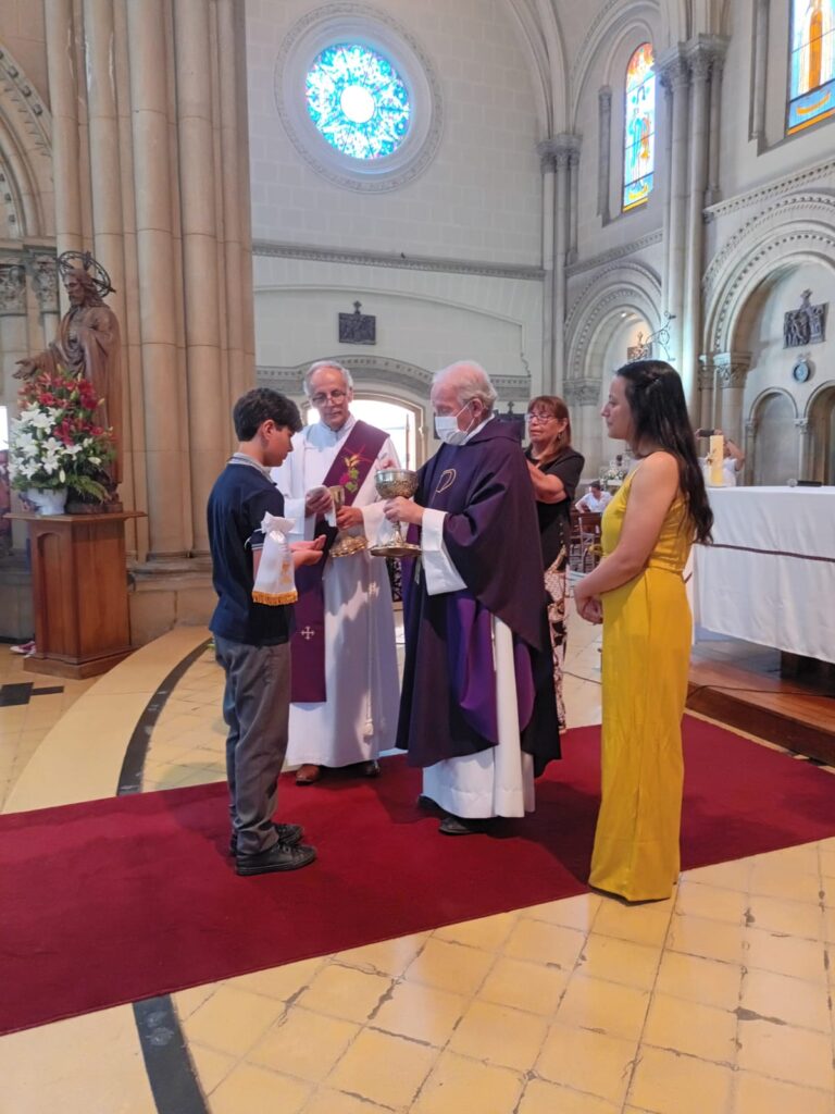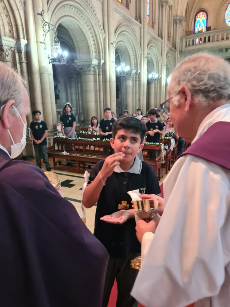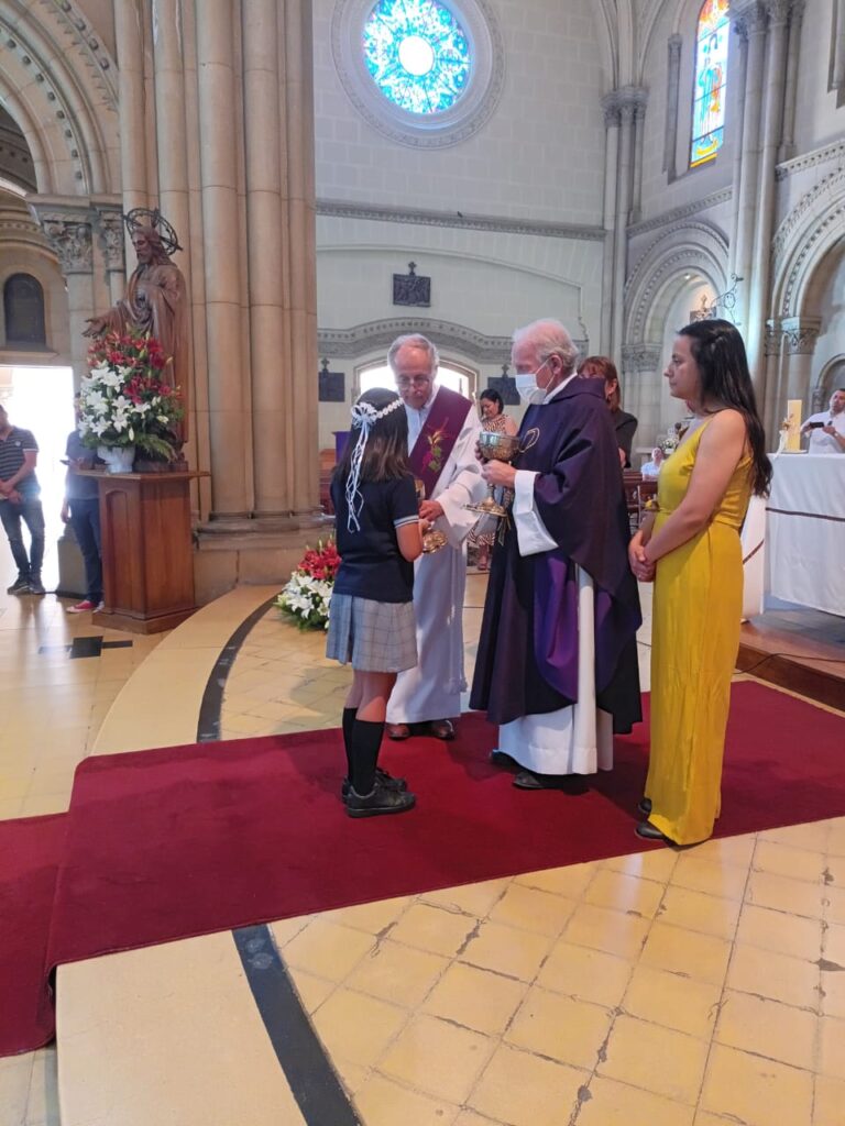 Este domingo 27 hicieron la Primera Comunión 11 estudiantes que, por diversos motivos, no pudieron recibir su sacramento antes.