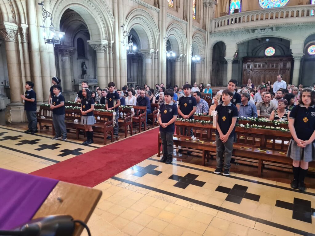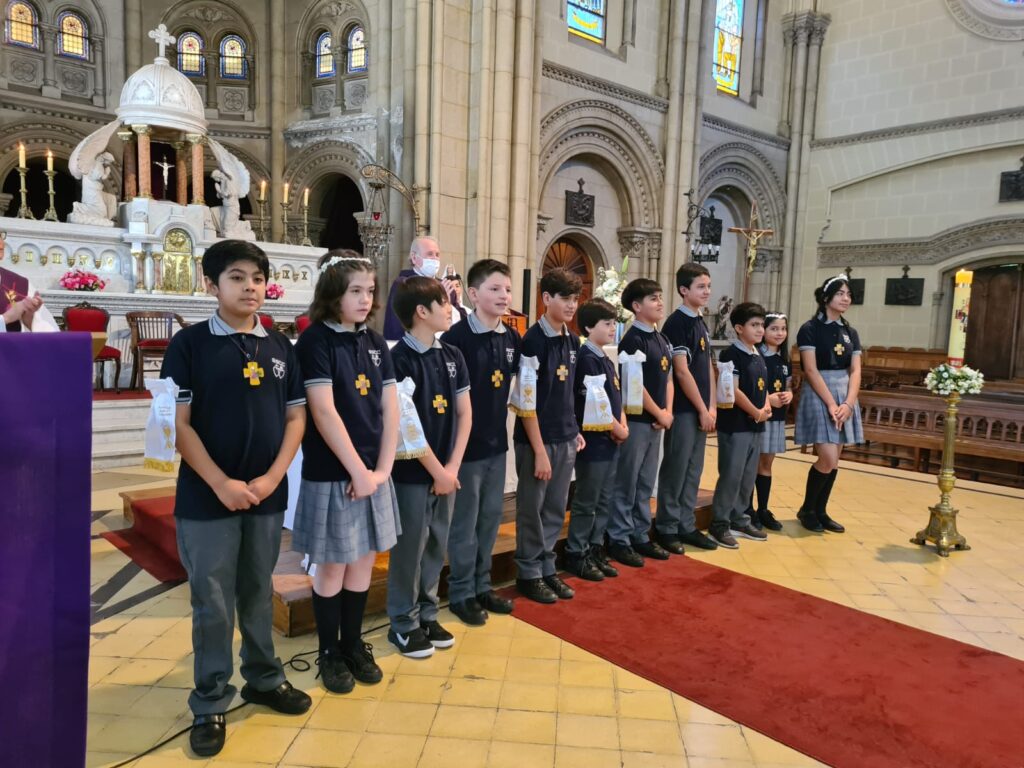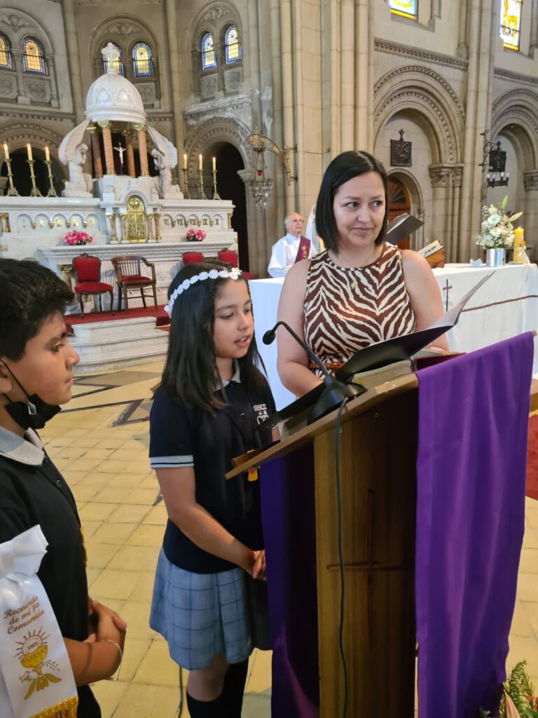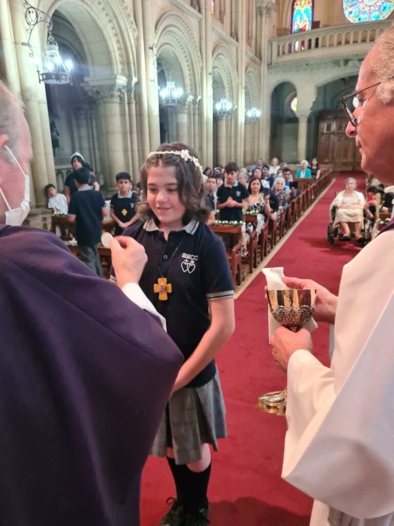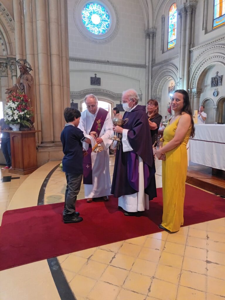 Este domingo 27 hicieron la Primera Comunión 11 estudiantes que, por diversos motivos, no pudieron recibir su sacramento antes.