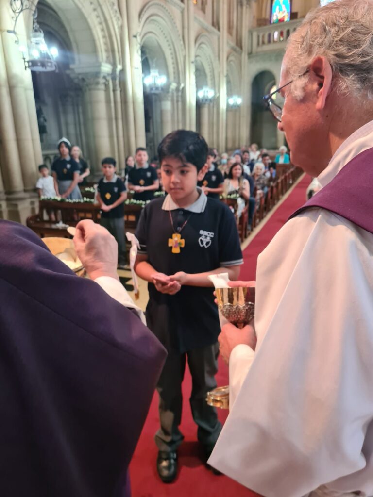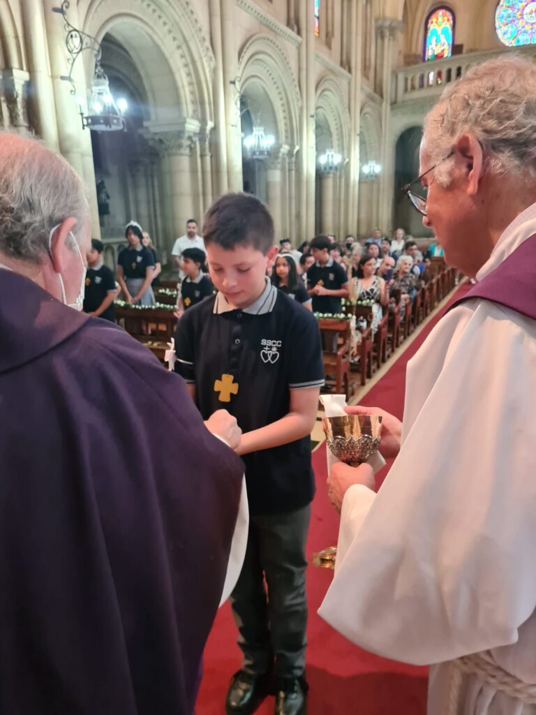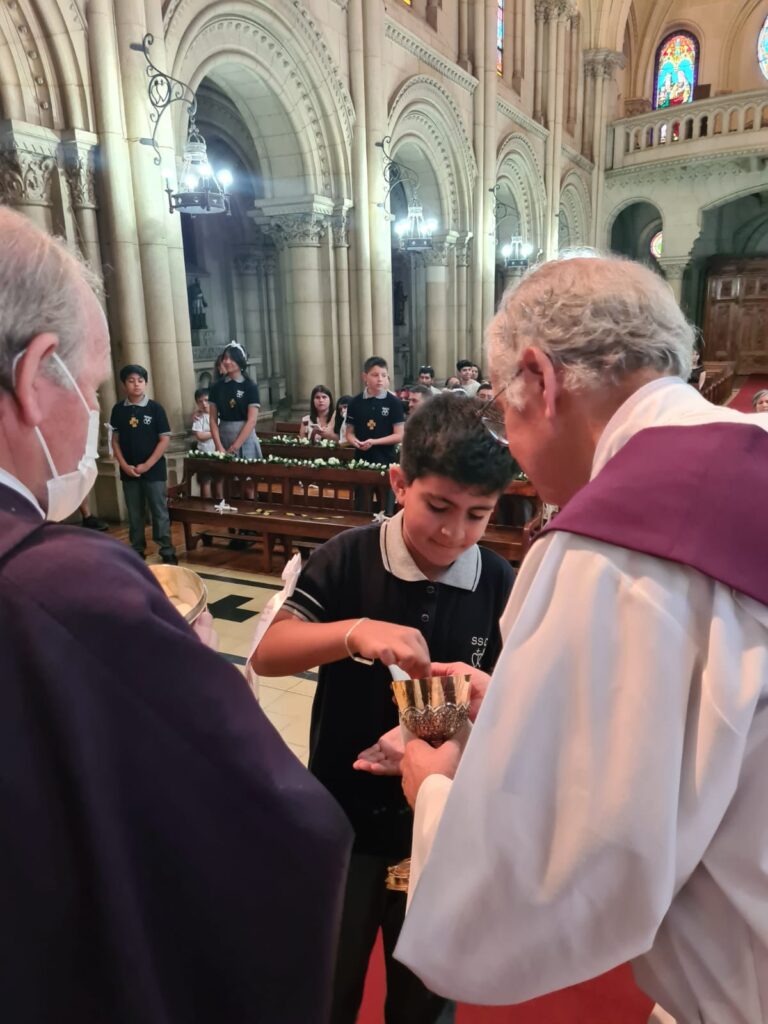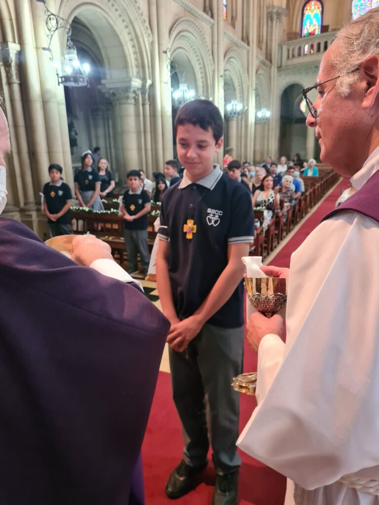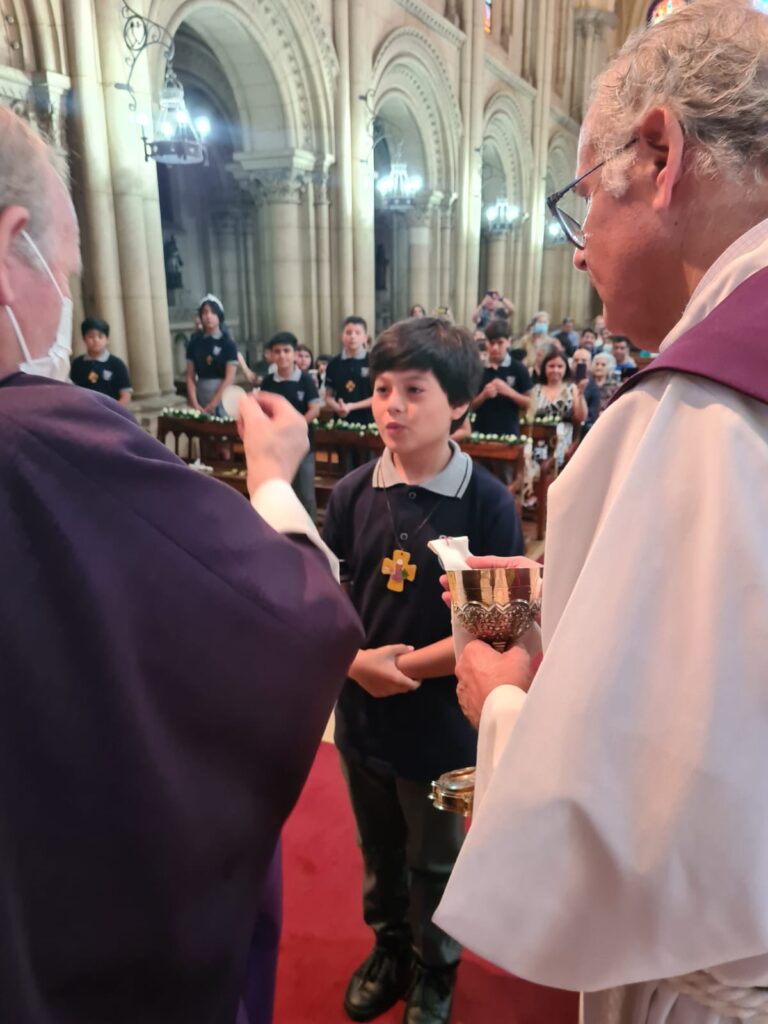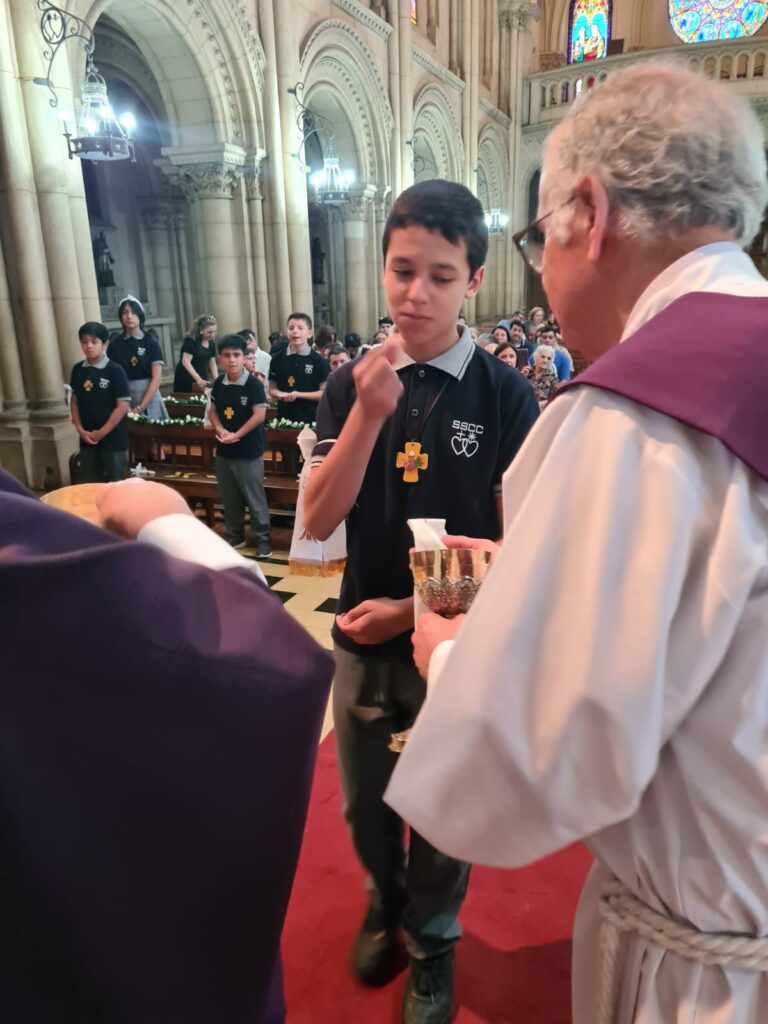 Este domingo 27 hicieron la Primera Comunión 11 estudiantes que, por diversos motivos, no pudieron recibir su sacramento antes.
